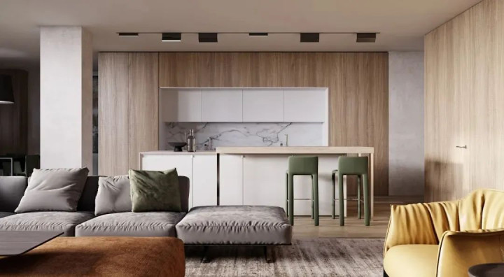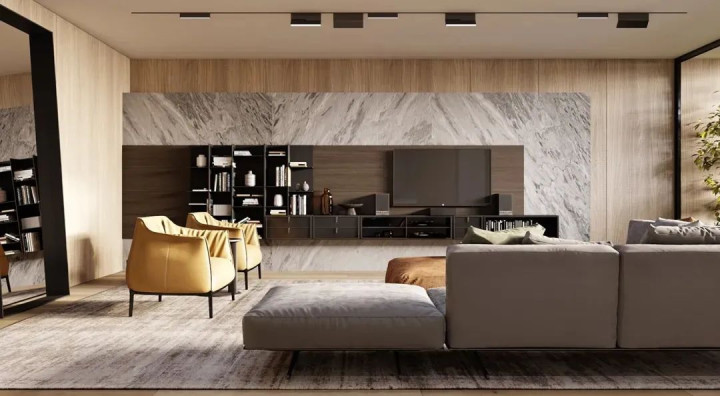 180㎡大平层新作! 大理石×木饰面碰撞, 布艺与皮沙发共筑治愈宅